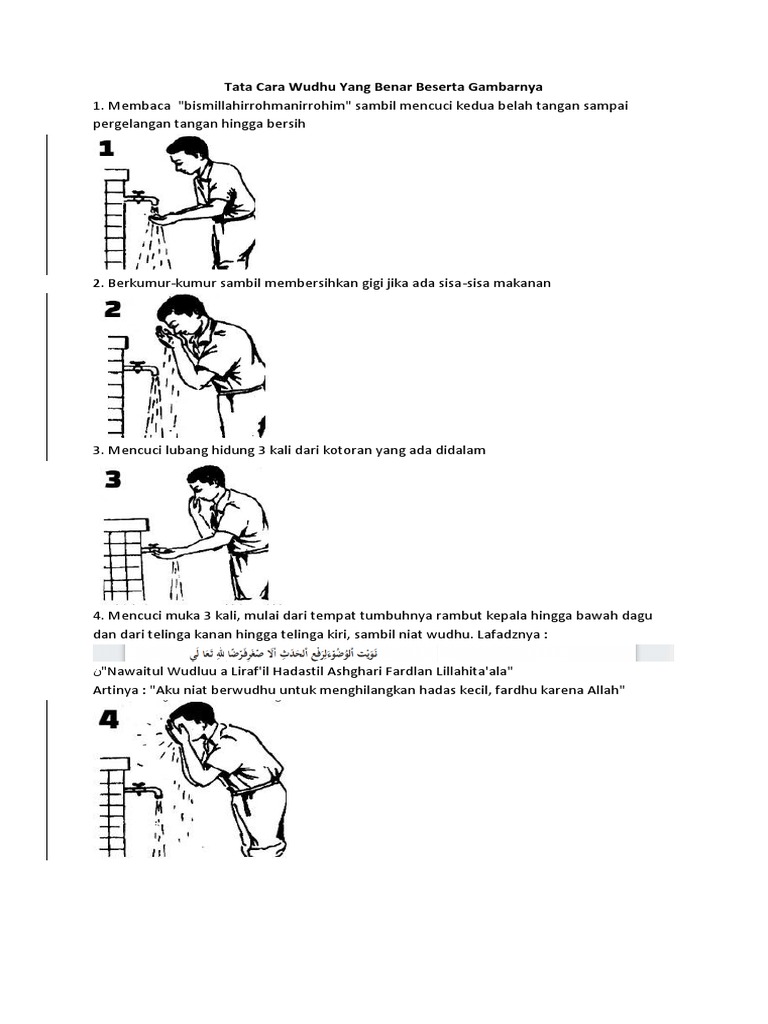 Berikut tata cara wudhu yang benar beserta bacaan dan do'anya: Muhammad ibnu sahroji, ma 1 januari 2019 25004. Sebagai muslim yang baik, seharusnya kita mengetahui niat beserta tata cara yang benar dan menyempurnakan wudhu. Jika demikian, maka cara berwudhu yang kamu lakukan bisa jadi nggak sah. Namun tata cara wudhu bagi sebagian orang, terutama yang baru mualaf dan yang baru mempelajari islam barangkali masih sering tertukar.